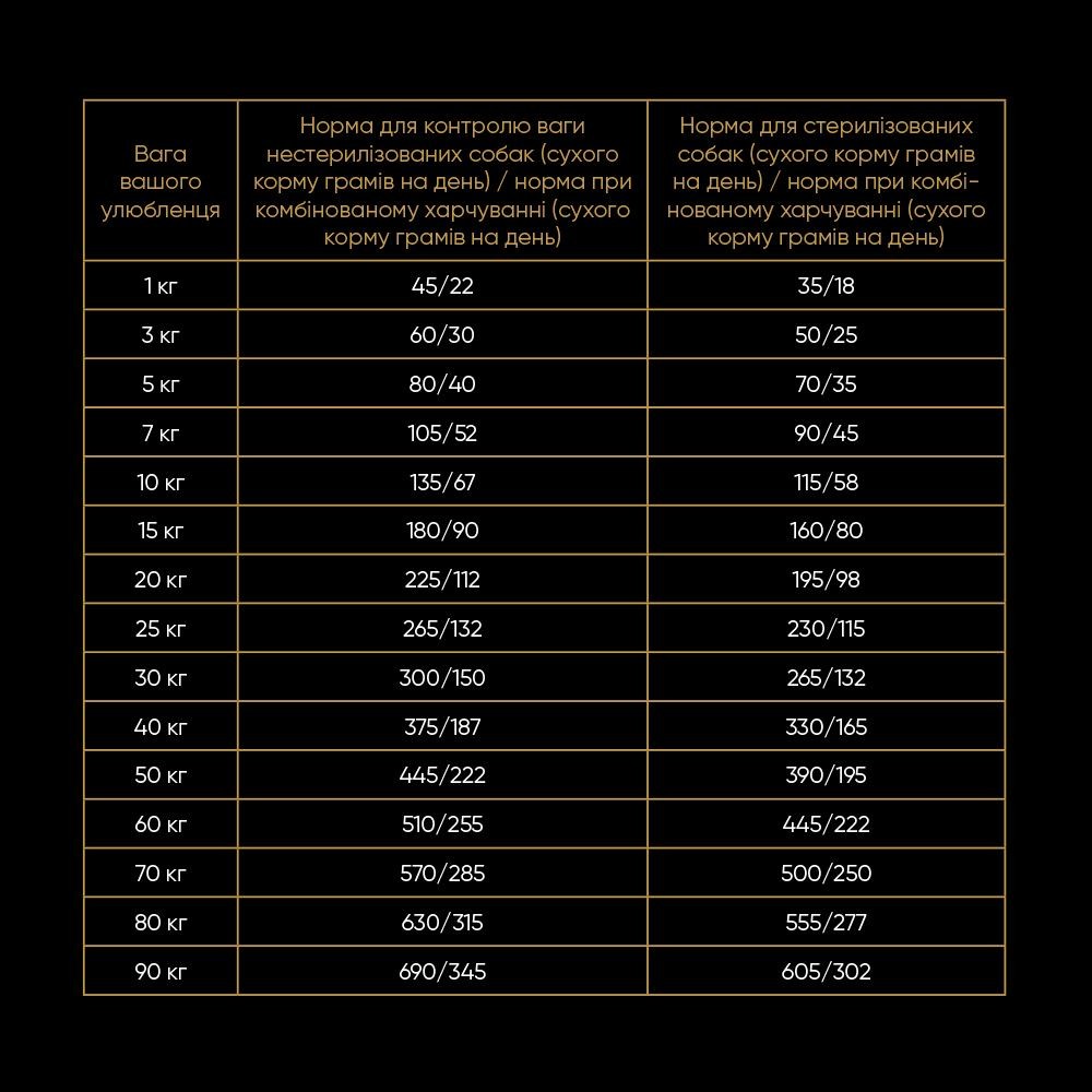 Норма годування собак (сухого корму грамів на день)/норма при комбінованому харчуванні (сухого корму грамів на день) |