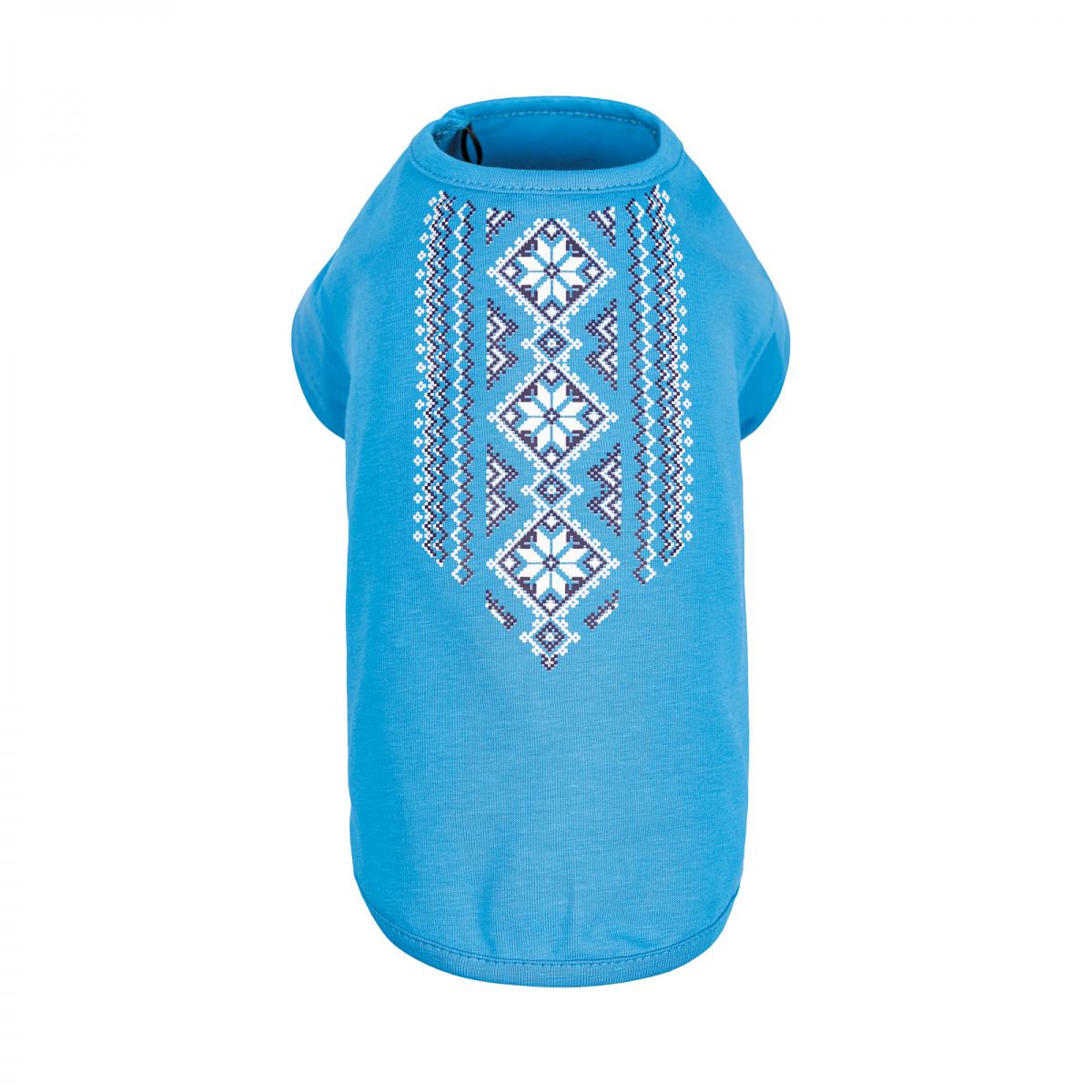 Для вашего хорошенького хвостика – хорошенькая этно-футболочка! Простой крой делает ее удобной и комфортной на прогулке, аппликация- вышиванка подчеркивает, что ваш любимец – настоящая украинская собачка, а значит самая красивая, вежливая и умная! Модель подойдет и для защиты от палящего солнца, и для прогулок в прохладную погоду.