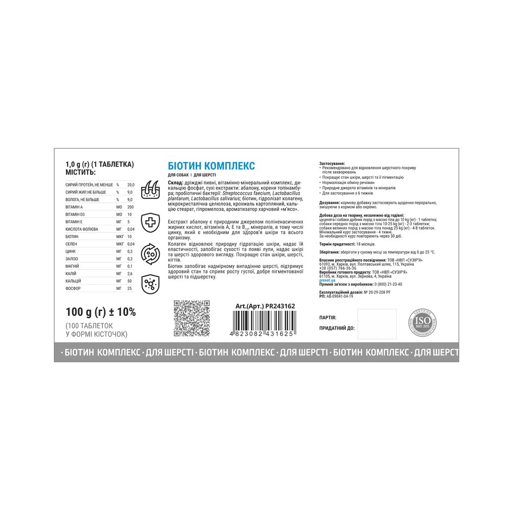 Вітаміни для собак Provet Profiline Біотин Комплекс для шерсті 100таб.