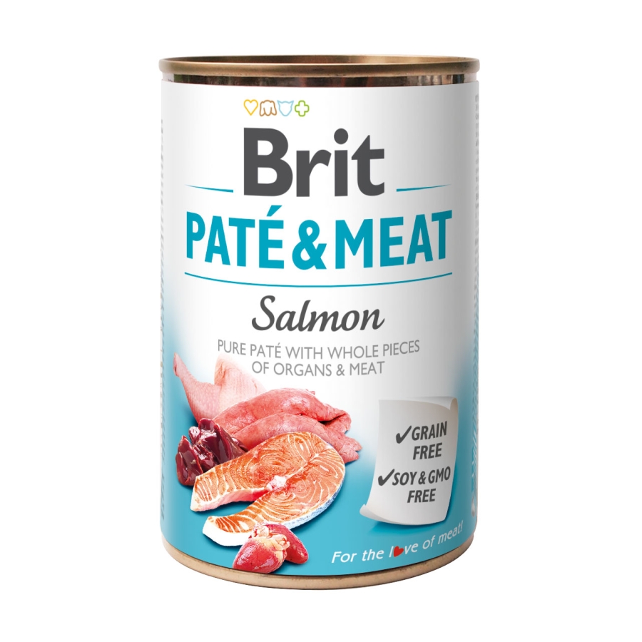 Описание: Мясной паштет с целыми кусочками лосося и курицы для собак. Лосось и мясо курицы 70%, остальное чистый мясной паштет. Полноценный корм для собак. Высокое содержание качественного мяса и его щадящая обработка являются гарантией отличного вкуса и запаха. Аппетитное сочетание настоящих кусочков мяса и мясных субпродуктов в паштете удовлетворит вкусы даже самых требовательных собак-гурманов. Brit Paté & Meat – это идеальная добавка к гранулированному корму. Помогает улучшить прием корма и восполнить потерю жидкости. Без глютена, без сои, без ГМО.