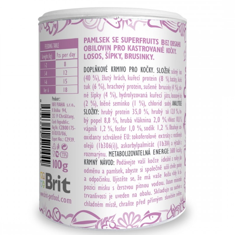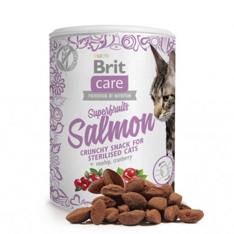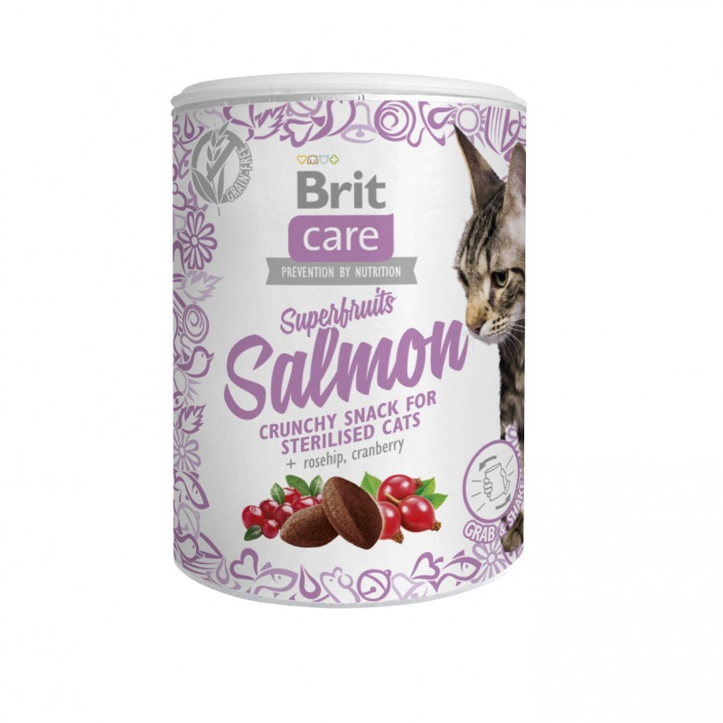 Описание: Хрустка закуска з лососем, шипшиною та журавлиною для стерилізованих котів. Беззернові ласощі «потрясіть-і-візьміть» порадують вашог улюбленця смаком і стануть прекрасним виявом вашої любові та турботи про нього.
