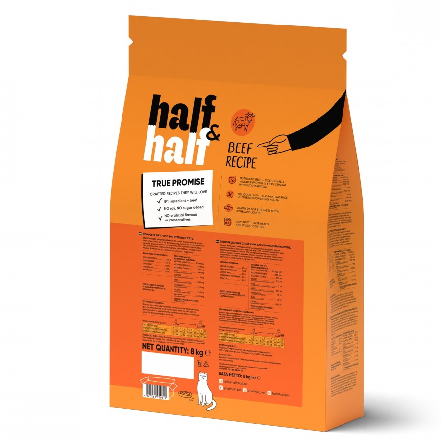 Сухий корм для стерилізованих котів Half Half з яловичиною 8кг