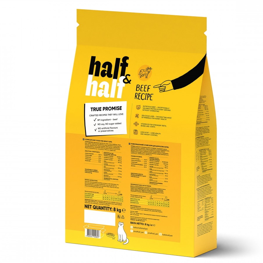 Збагачена фруктами, овочами, хондропротекторами й лікарськими рослинами рецептура Half&Half піклується про оптимальну користь та смак у кожній порції.
