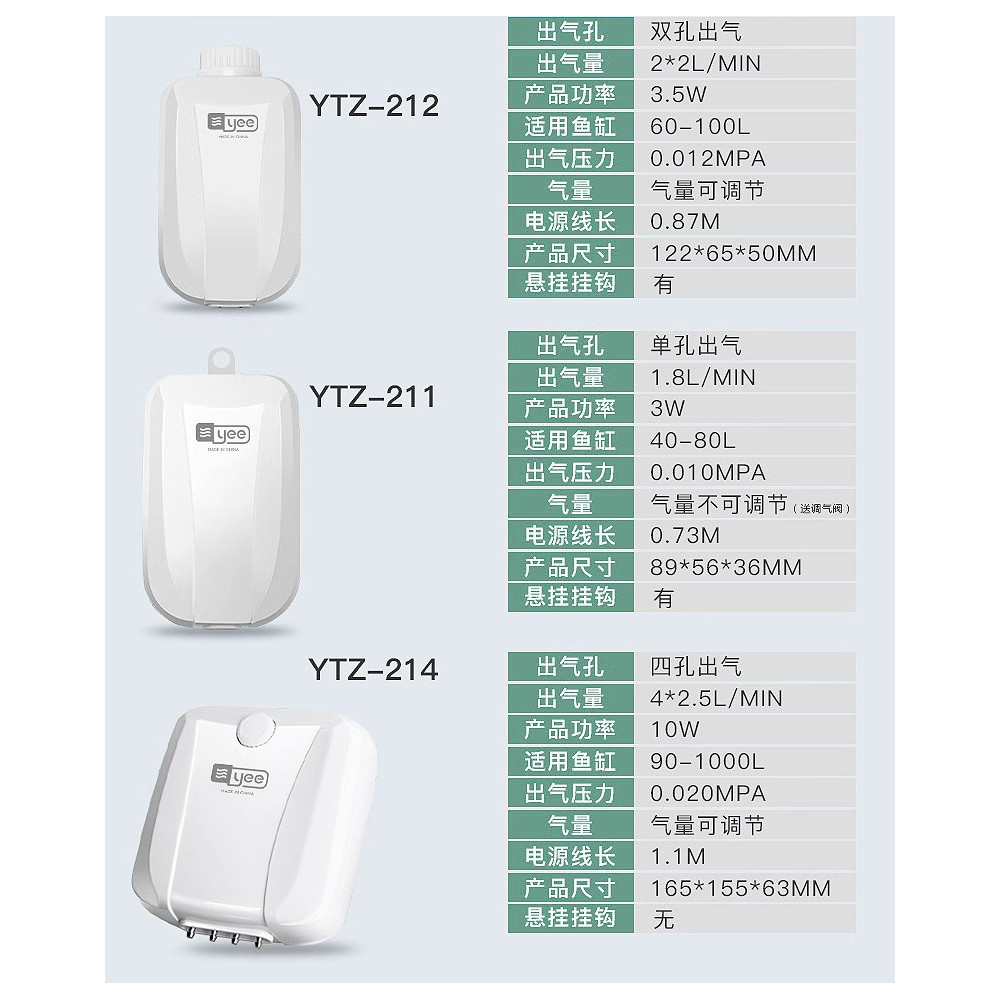 Тихий аквариумный компрессор YEE. Снижен уровень шума и повышена эффективность за счет насоса с двухсторонним симметричным движением. Обновленный медный механизм, стабильная работа, медленный низковольтный поток, уменьшение шума.