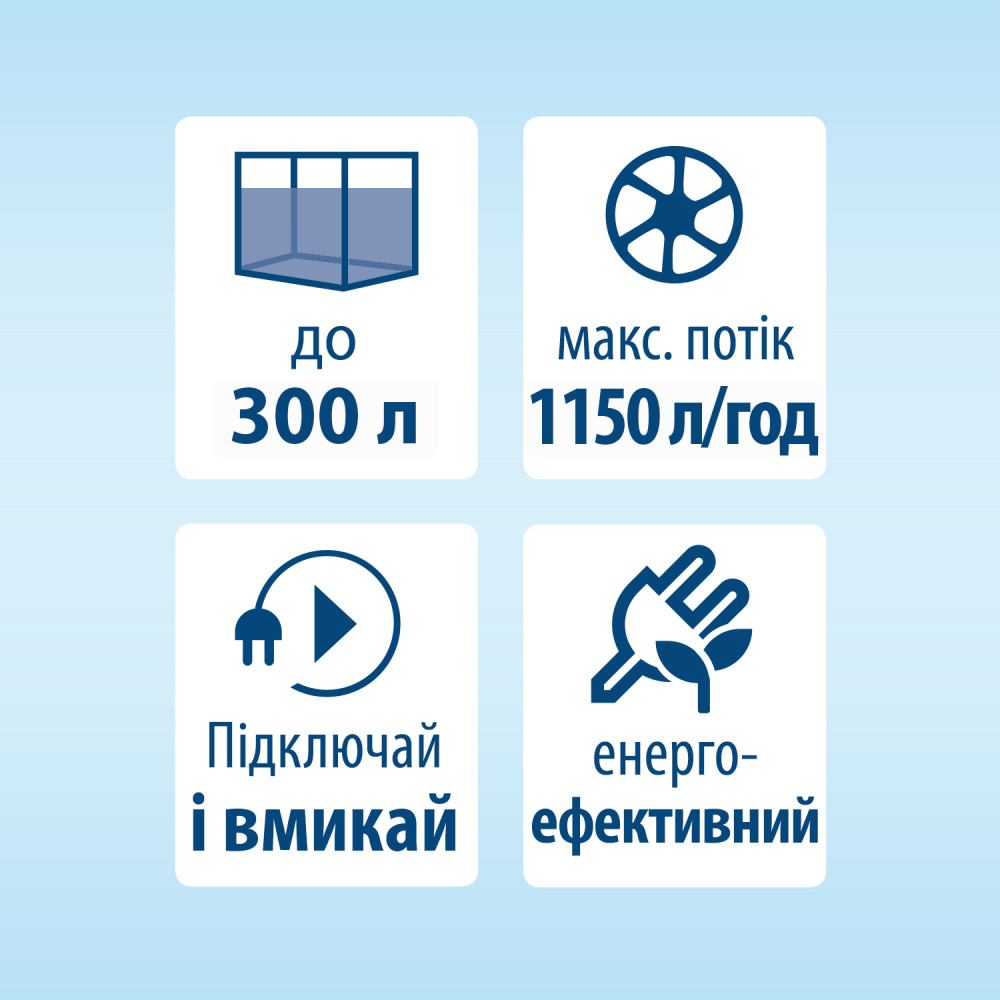 Владельцы аквариумов смогут насладиться красотой подводной жизни благодаря кристально чистой воде. Полный набор с внешним аквариумным фильтром Tetra EX 1000 plus отличается исключительной мощностью: скорость потока воды увеличена на 26%*, при этом энергоэффективность и уровень шума остаются на прежнем уровне.