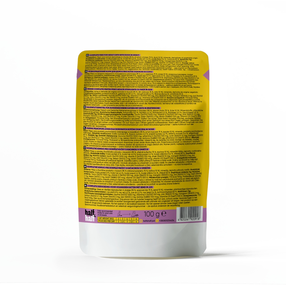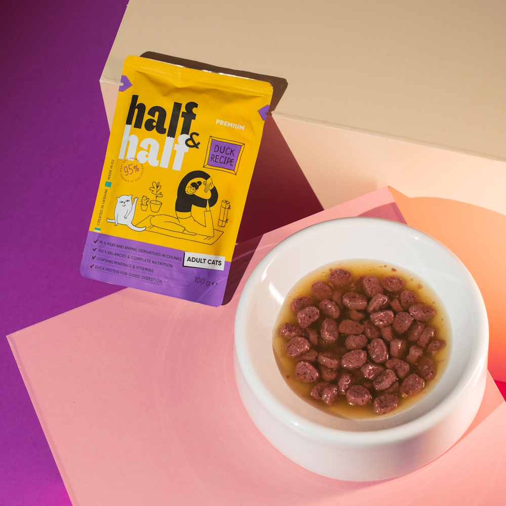 Оптимальный по калорийности влажный рацион Half&Half станет отличным дополнением к сухому корму для взрослых кошек, поддержанию их активности и удовлетворит энергетические потребности.