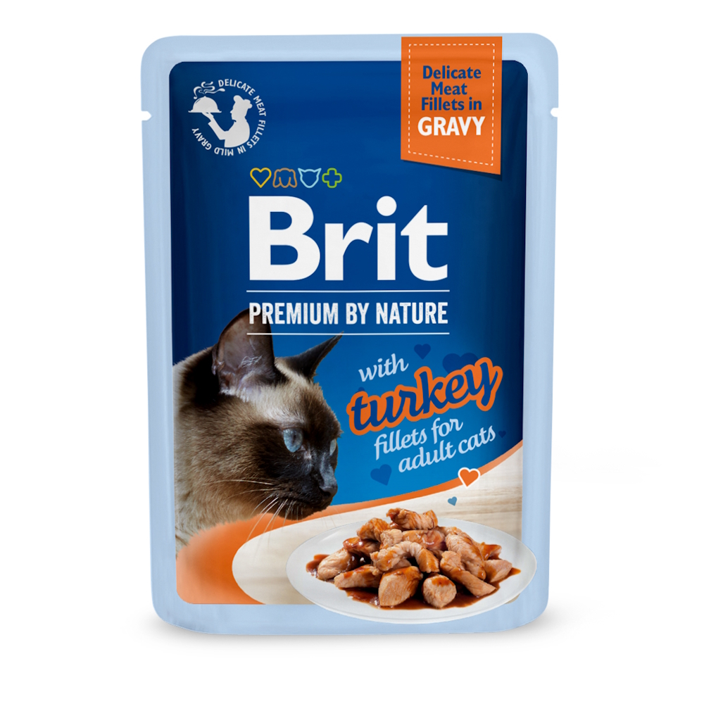 Brit Premium Delicate Fillets in Gravy Turkey – полнорационный влажный корм премиумкласса с индейкой для взрослых кошек.