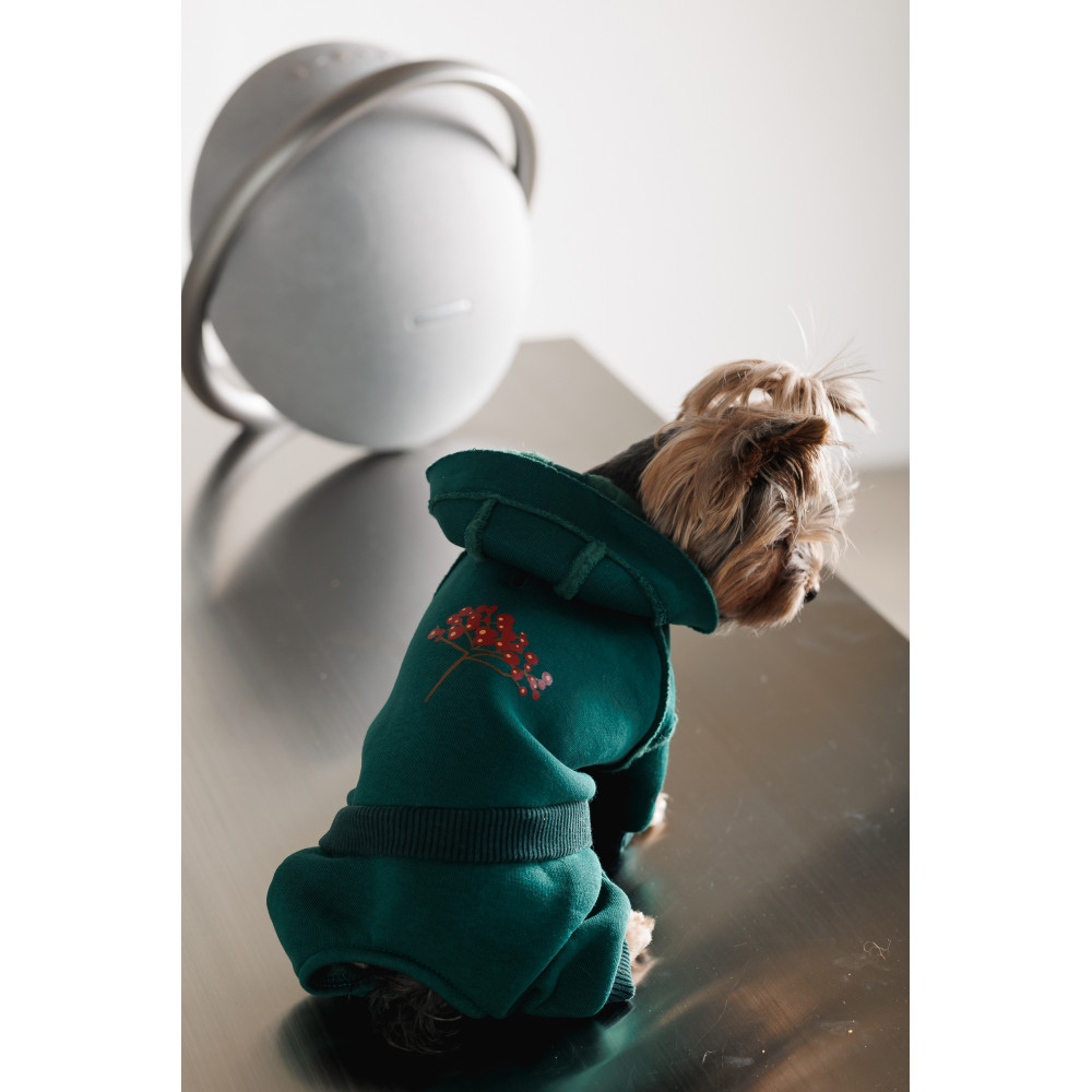 Модный изумрудный цвет, теплый и мягкий материал, очень удобный крой – именно то, что нужно стильным украинским хвостикам для веселого досуга. Ягоды калины на спинке – не только яркий акцент, это один из древнейших символов Украины, олицетворение красоты и благополучия, подчеркивающий: украинские песики – лучшие!
