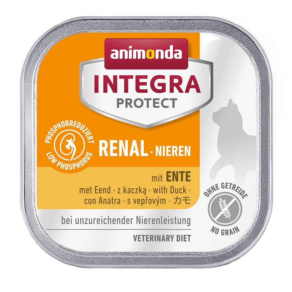 INTEGRA PROTECT Renal з качкою – спеціальний дієтичний корм суперпреміум класу для котів із захворюваннями нирок. Цей раціон містить значно менше фосфору і білка в порівнянні зі звичайним кормом