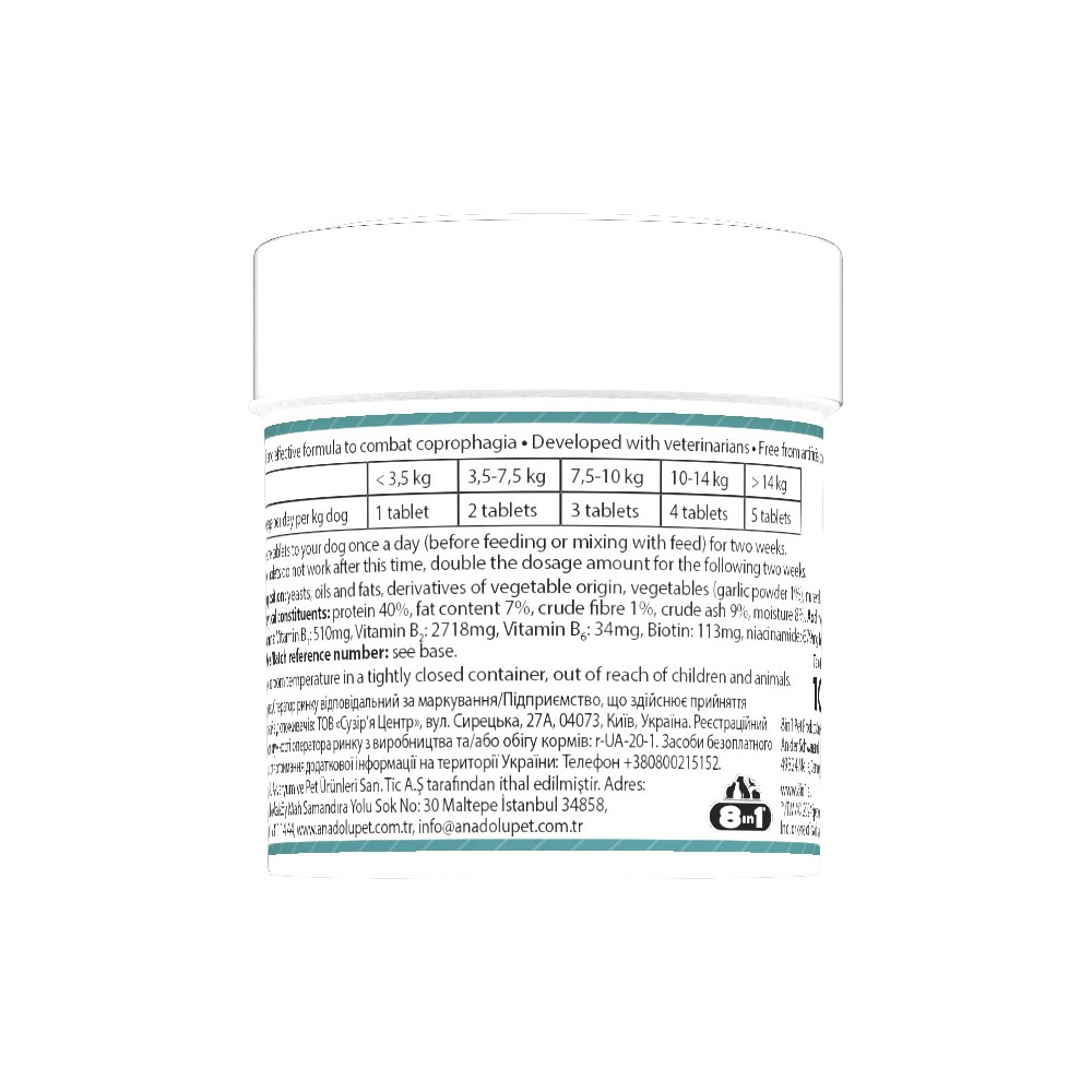 Каталог товаров : Вітамінні добавки та вітаміни для собак > Вітаміни для цуценят та дорослих собак від копрофагії 8in1 Excel Deter 100шт