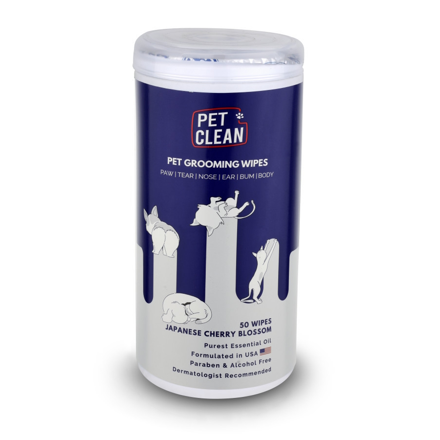 Серветки вологі Pet Clean PET GROOMING WIPES для грумінгу домашніх тварин щоденне очищення з ароматом японської вишні 50шт арт. CCPG50