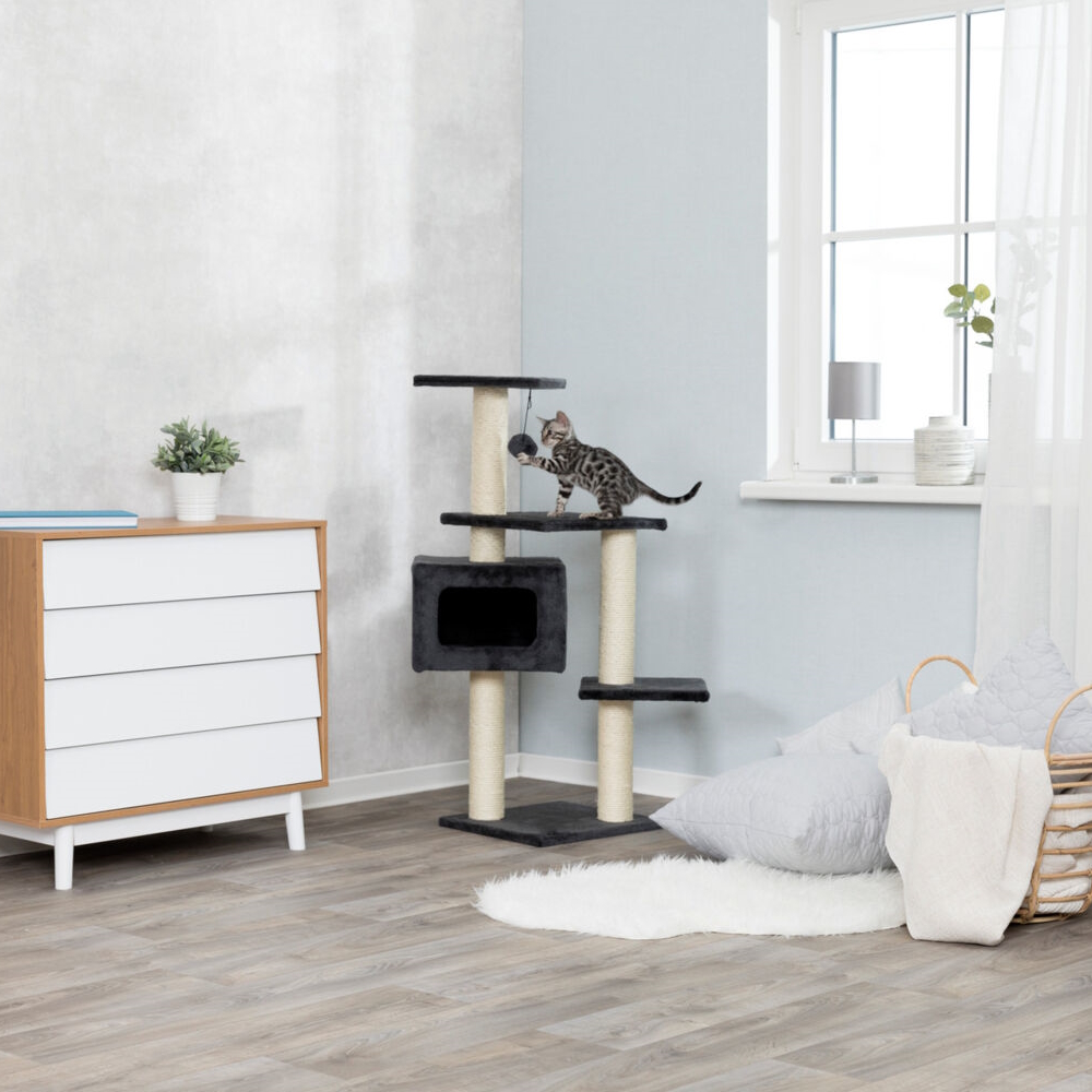 Коти по натурі – грайливі тварини з інстинктами мисливця, а тому, їм важливо мати можливість постійно тримати свої кігті гострими і застосовувати за призначенням. Такі ігри можуть призвести до пошкодження меблів та речей удома, а тому, розробка німецького виробника Trixie Дряпка Trixie з будиночком «Palamos» 109 см, стане ідеальною покупкою. Ваш улюбленець зможе веселитися і розвиватись, не шкодячи речам удома.