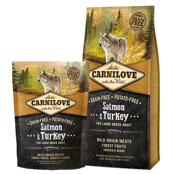 Carnilove Salmon&Turkey Large Breed Adult - полнорационный беззерновой корм с лососем и индейкой для взрослых собак крупных пород весом от 25 кг.