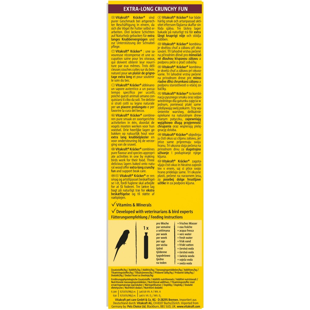Крекер з фруктами для хвилястих папуг - смачне і корисне доповнення до основного раціону вихованця. Ласощі є додатковим джерелом вітамінів і мінералів. Підтримує оптимальний стан хвилястих папуг і задовольняє їх потребу у сточуванні дзьоба. Виготовлений за унікальною технологією триступеневого запікання і не містить цукру. В упаковці 2 крекери.